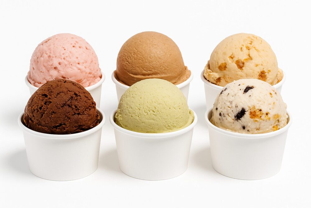 6 assorted flavours of 4oz (118ml) plant based ice cream. All ice cream contain cashew, coconut, cacao, sugar and more.